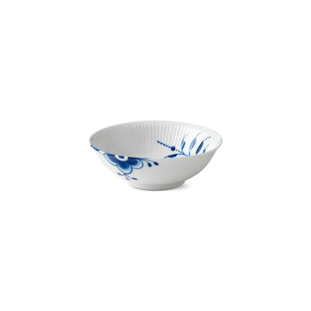 This 35 cl Bowl is decorated by hand with the distinct elements of the Blue Fluted Mega pattern. Unlike other pieces from the contemporary collection, the flutes are placed on the bowl’s inside, while the smooth outer surface lends a simplistic style. The bowl is ideal to be used as a cereal bowl or as a serving bowl for compote and other garnishes. Blue Fluted Mega is comfortingly familiar yet surprisingly refreshing. Born from a bold reinterpretation of the iconic pattern of Blue Fluted Plain, Blue Fluted Mega captivates with graphic and magnified sections of the original mussel painted pattern. Since its creation in 2000, Blue Fluted Mega has grown to become a true, new classic in Danish design. The eye-catching collection is beautiful on its own or in combination with the Limited Edition collection Mega Rose or any other Royal Copenhagen dinner service.