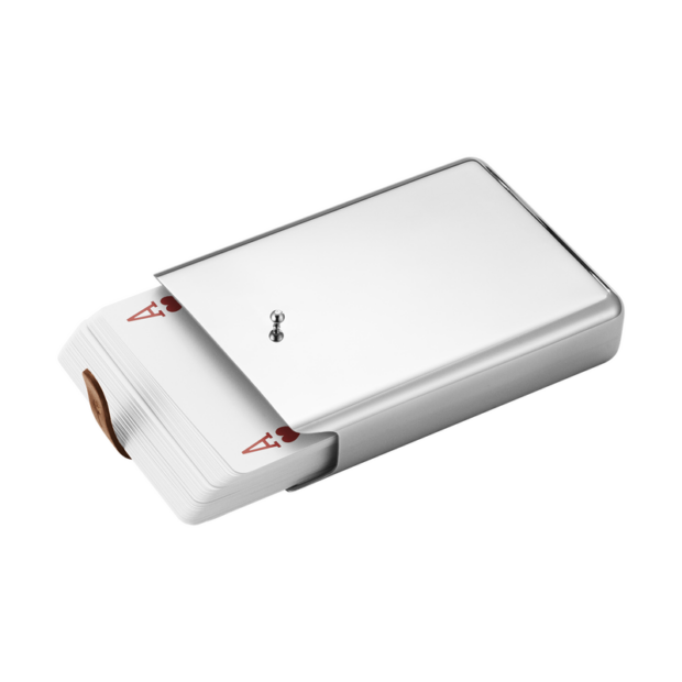 Den perfekte gaven til den som har alt! Kanskje det mest allsidige og spilte spillet i verden; en kortstokk er det beste reisefølget en kan ha, så gjør det til en stilfull luksus med dette etuiet i rustfritt stål med skinnfeste. Etuiet rommer en komplett kortstokk.